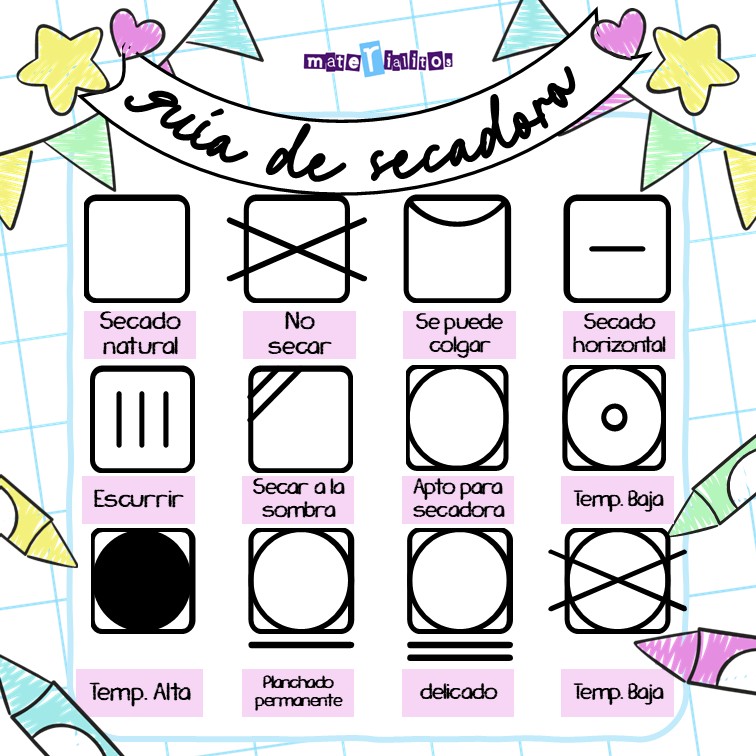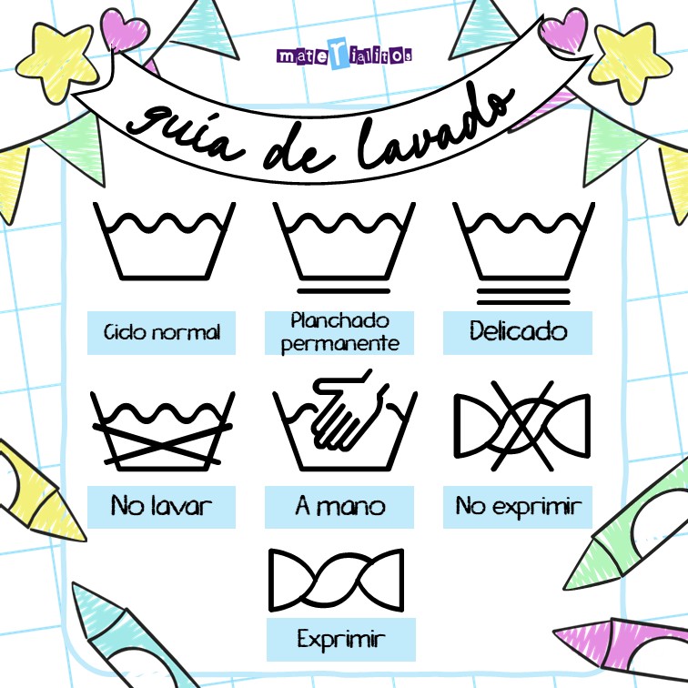 Y por ello, estoy diseñando tarjetitas para etiquetar las prendas, de esta forma podrás saber fácilmente que hacer y que no hacer, estos iconos ya existen, son de uso universal (en su mayoría) por ello te comparto su simbología.