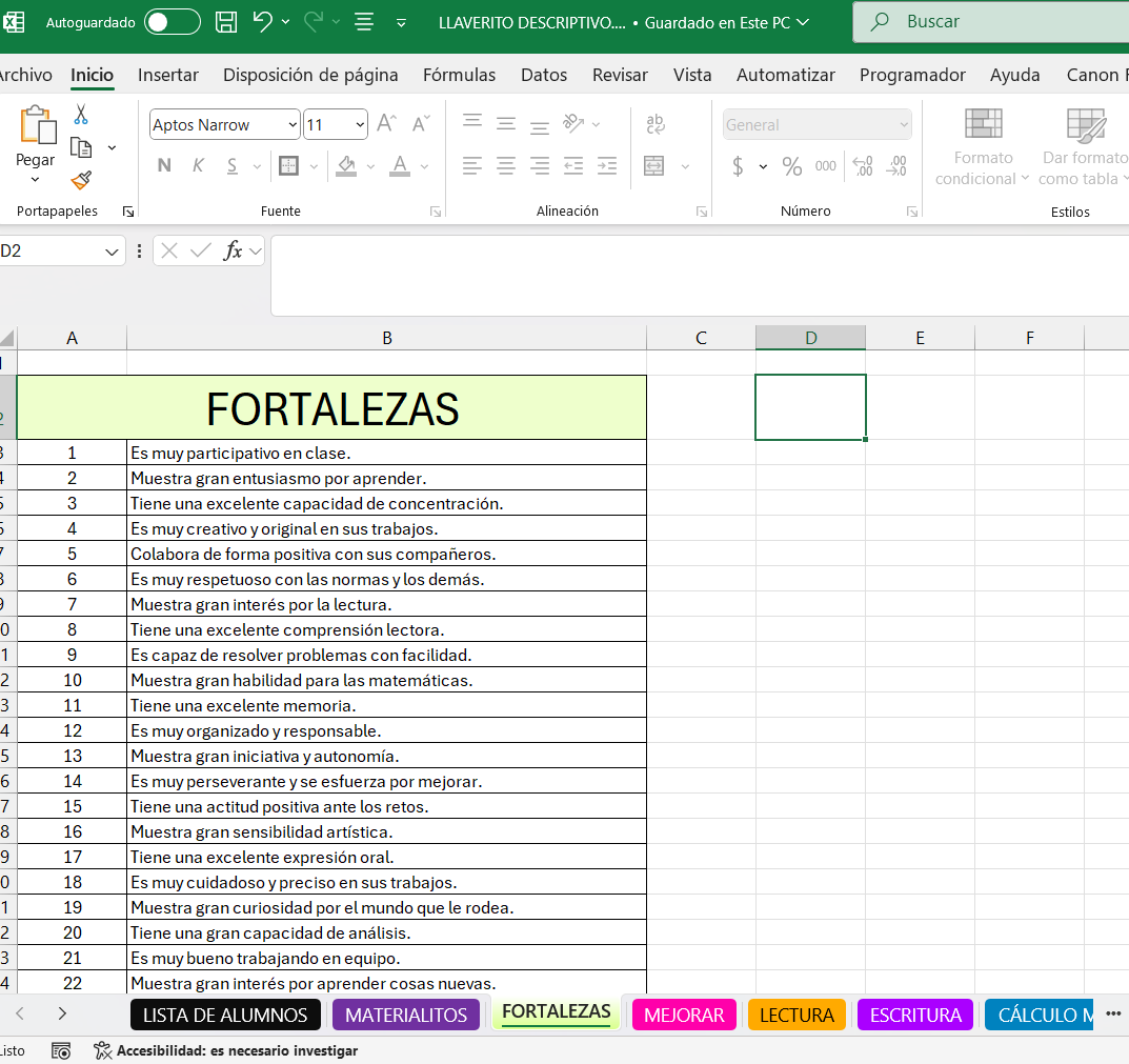 Entrega a tus alumnos un llaverito que pueden leer con facilidad, así podrá conocer sus fortalezas, habilidades y más sobre si mismos, o puedes entregarlo a los padres de familia para que ellos puedan identificarlas, con ello tomar decisiones, entre otros aspectos importantes a considerar.